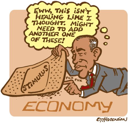 According to some economic analysts we’ll likely see another recession. I’m more of a ‘supply-sider’ myself so I wasn’t too thrilled when the $814 billion Stimulus Package was passed last year. It gave government the right to intentionally add to our deficit in order to create jobs. Now the unemployment rate is nearing 10% and, despite recent rallies, it still looks like a bear market. It may have sounded like a good idea but I think many forget that the money has to come from somewhere. “Robbing Peter to pay Paul” by either borrowing money or raising taxes doesn’t add up in my mind. We’ll all be paying the price for years to come. How does this get us ahead? With the threat of deflation on the horizon it scares me to see the President picking at this economic scab.