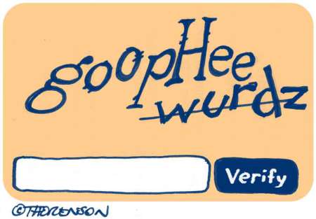 I always wondered if someone was paid to come up with those weird verification words we’re asked to type in on secure sites. Granted most are just gibberish but every once in a while you’ll see something that seems coherent. Even more amusing is the fact that these things actually have a name: CAPTCHAs. It’s an acronym that stands for Completely Automated Public Turing test to tell Computers and Humans Apart. I’d feel better if there was a human on the other end generating these. If a computer randomly plugs characters in and creates the distorted shape how secure can it really be? Wouldn’t there be a way around it? It’s like radar detectors. I’m pretty sure the one I used back in high school would be completely worthless today because the technology is constantly improving. How long will it be before we start getting a CAPTCHAs that a computer AND human can’t read.