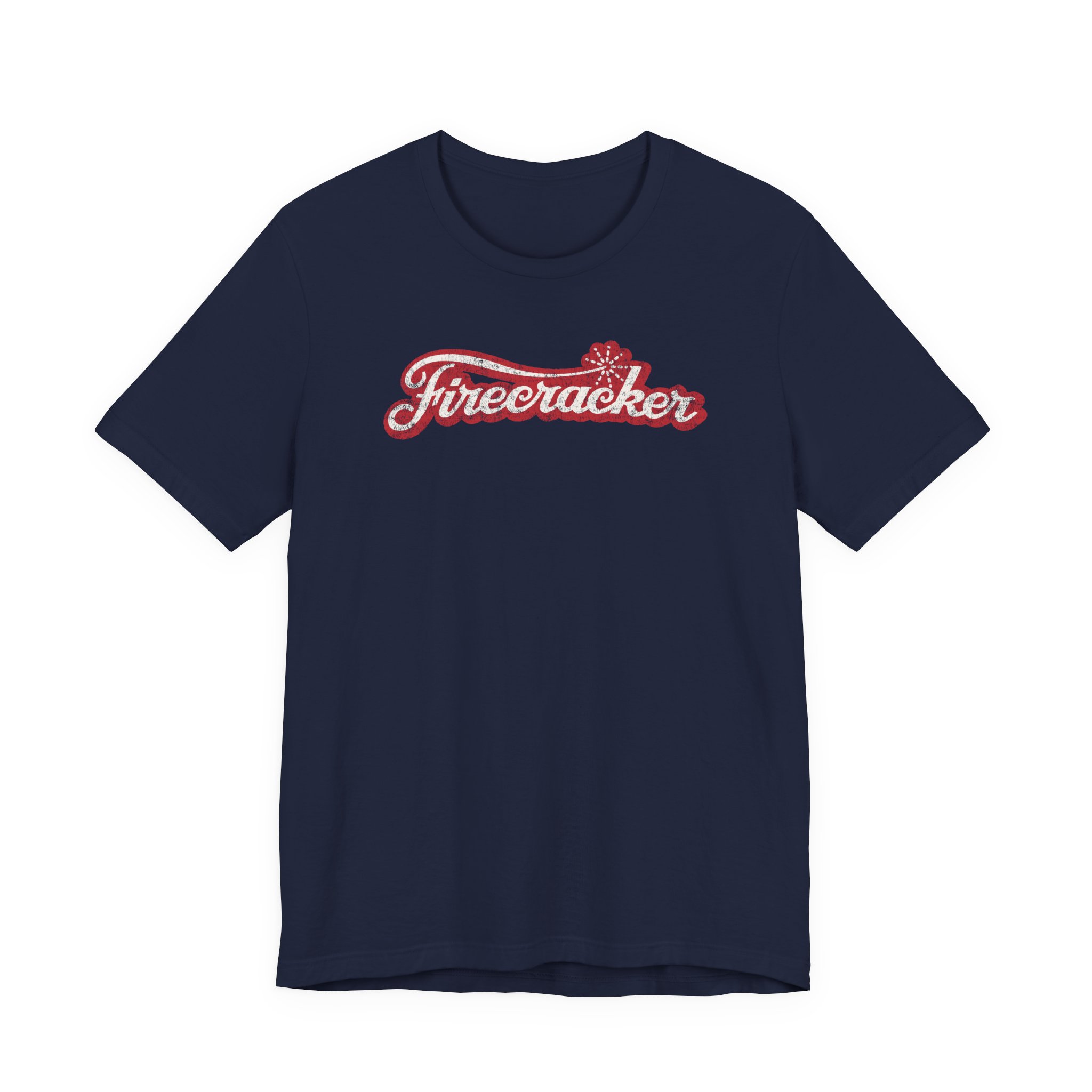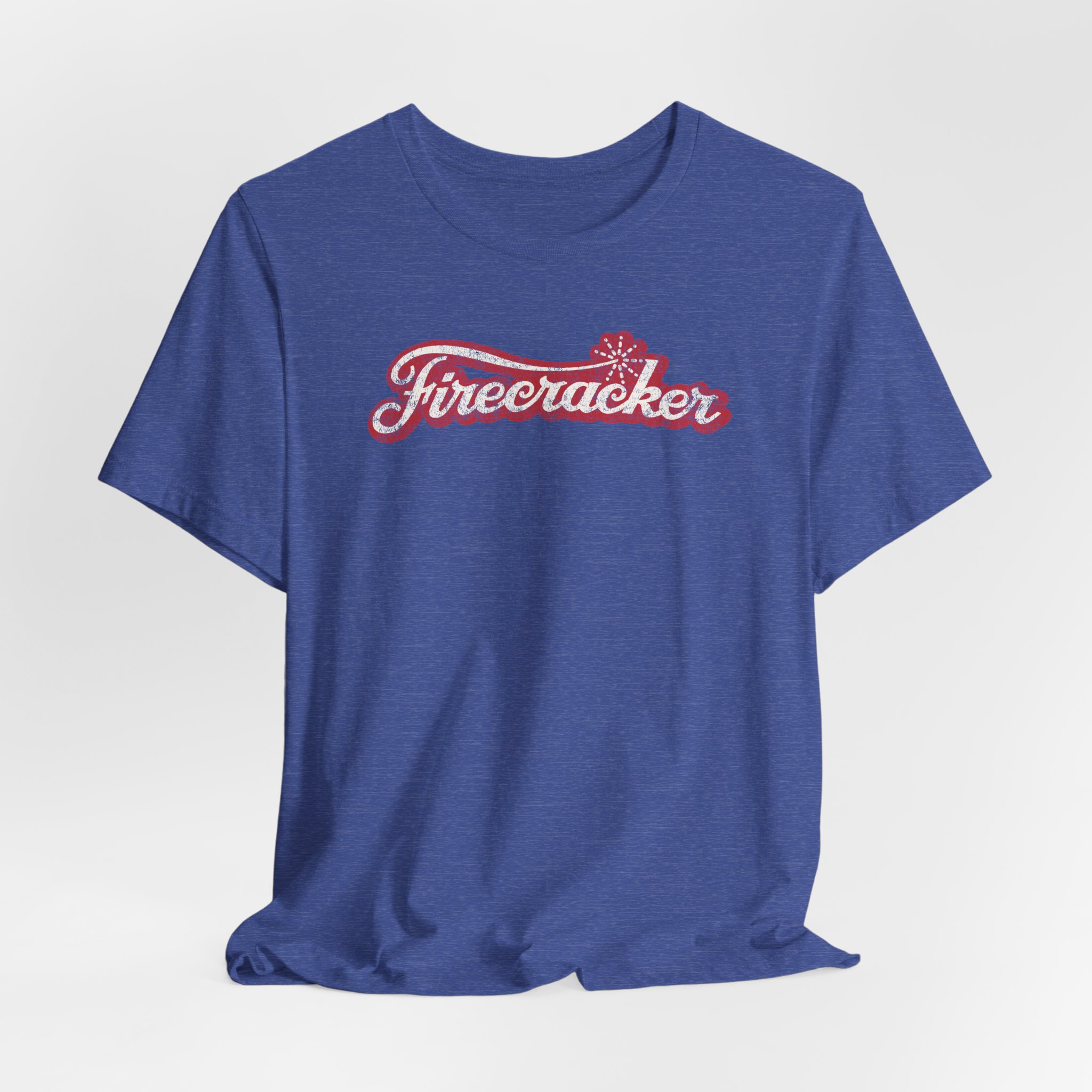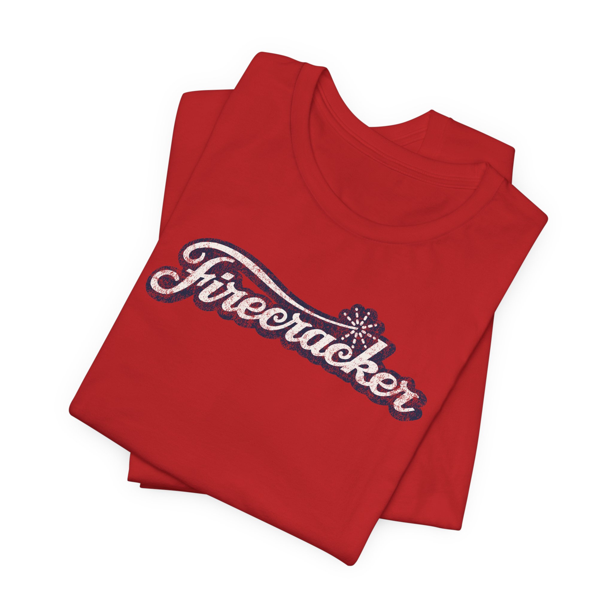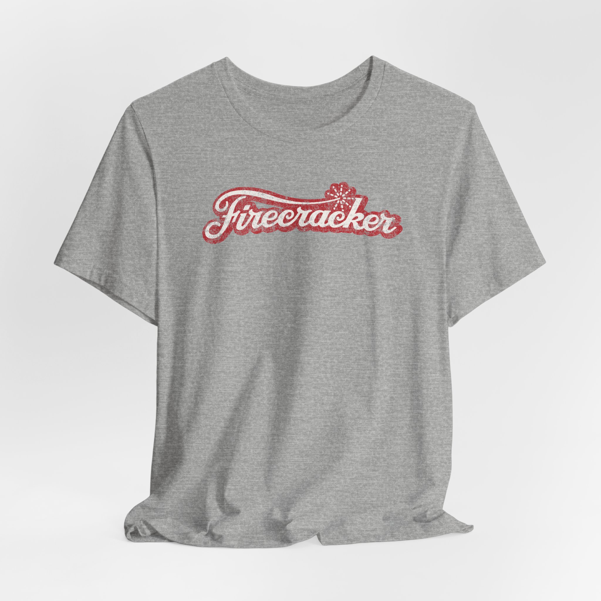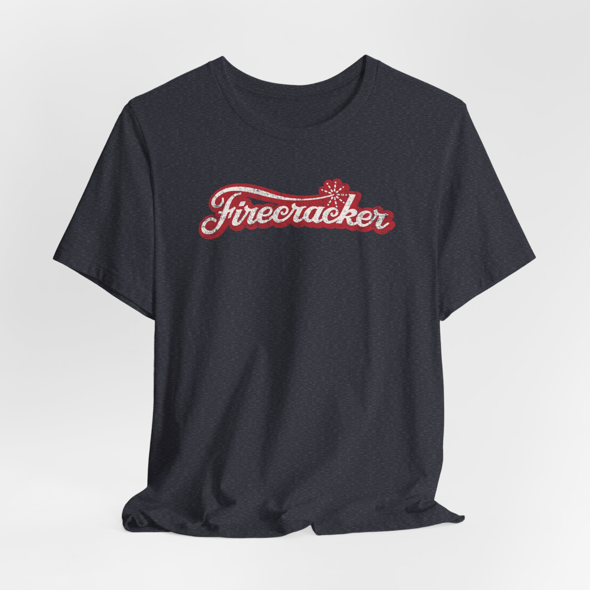 Firecracker Graphic Tee — Retro Script Patriotic T‑Shirt