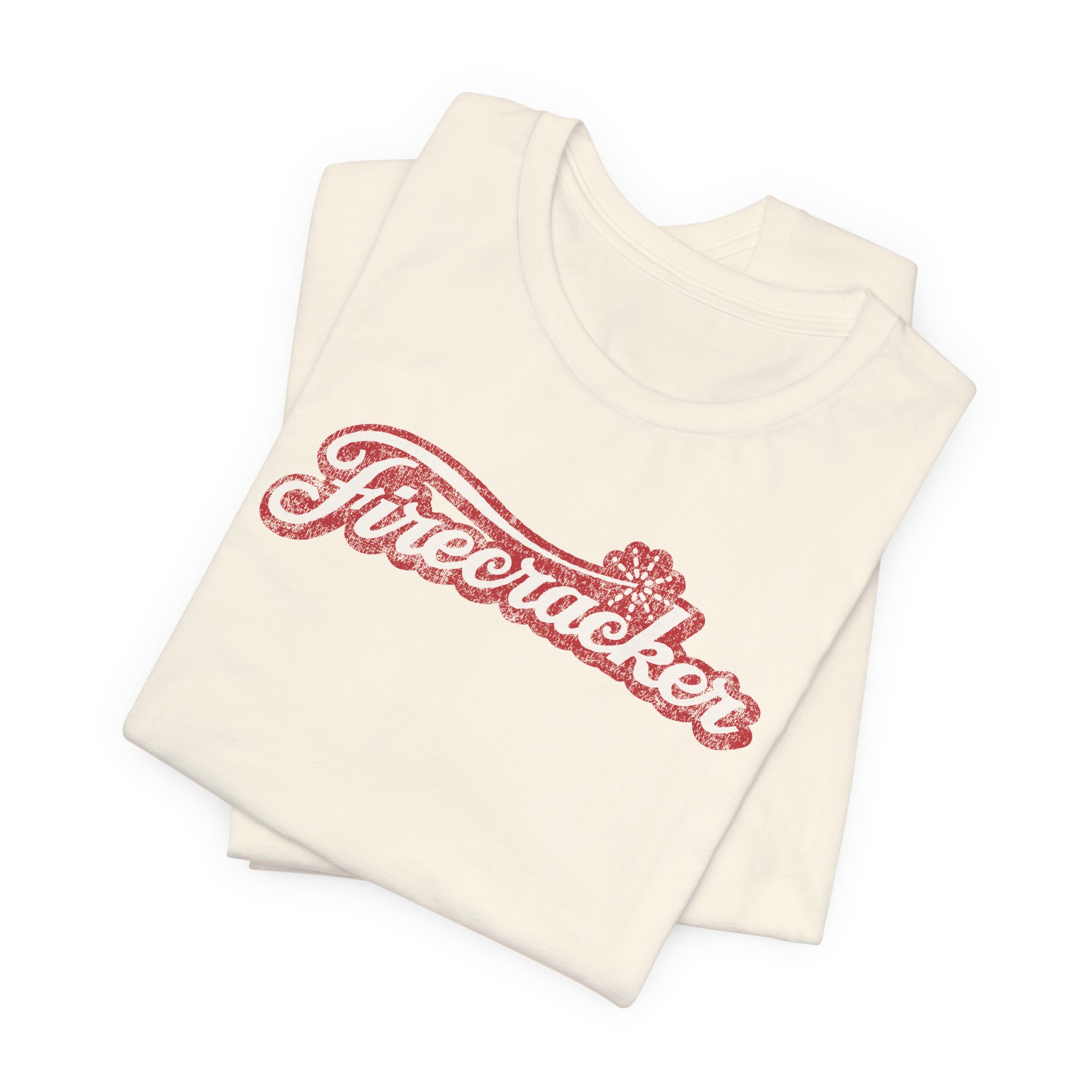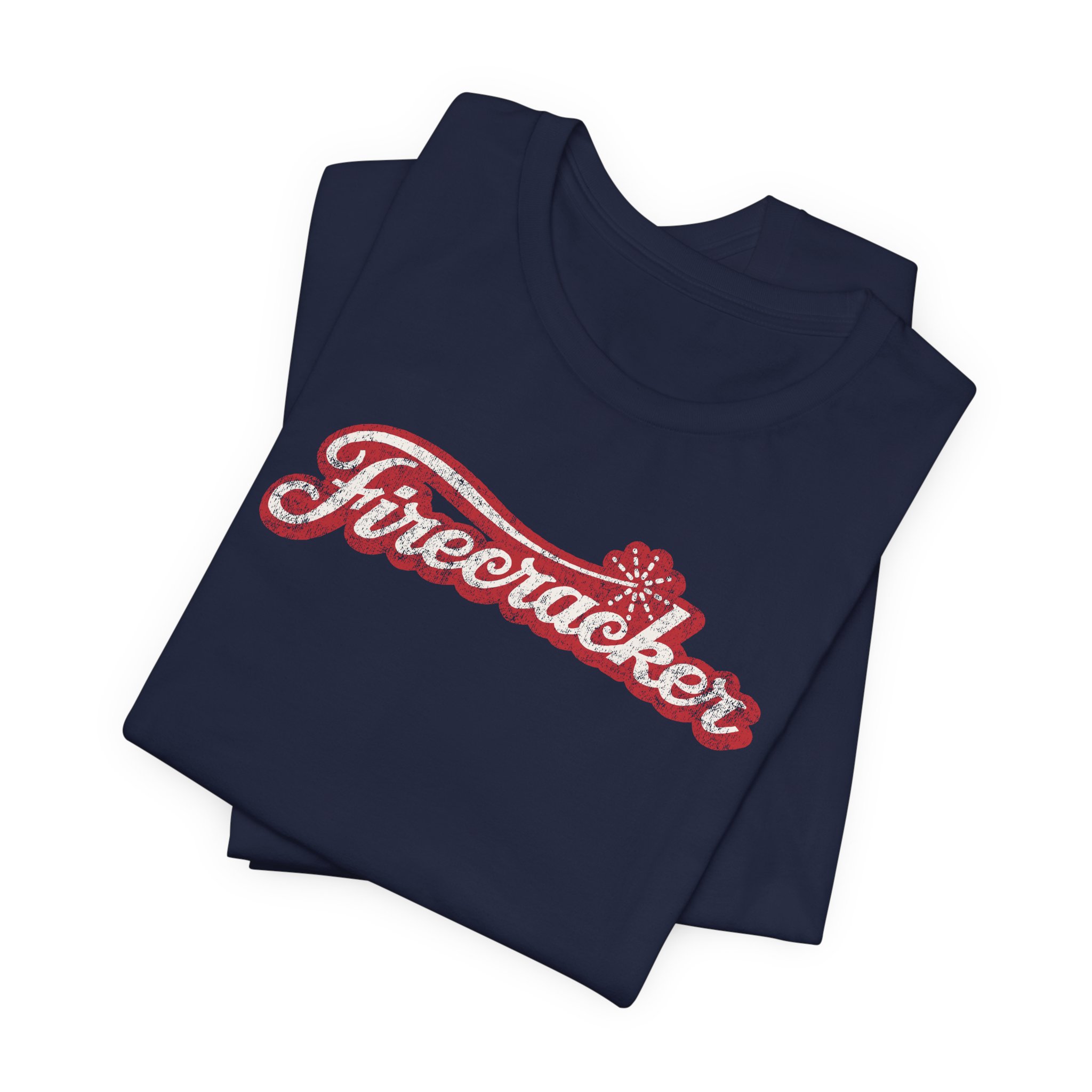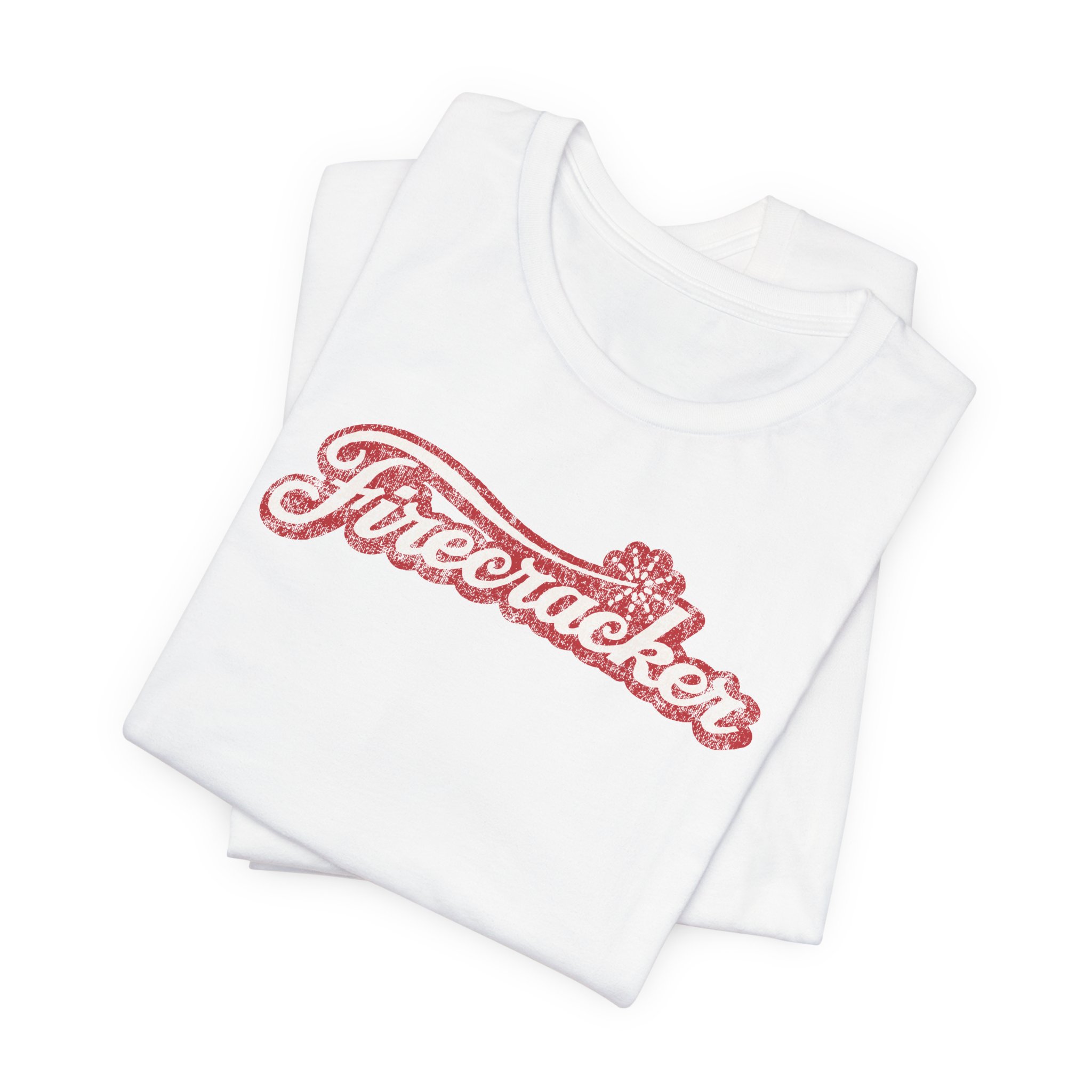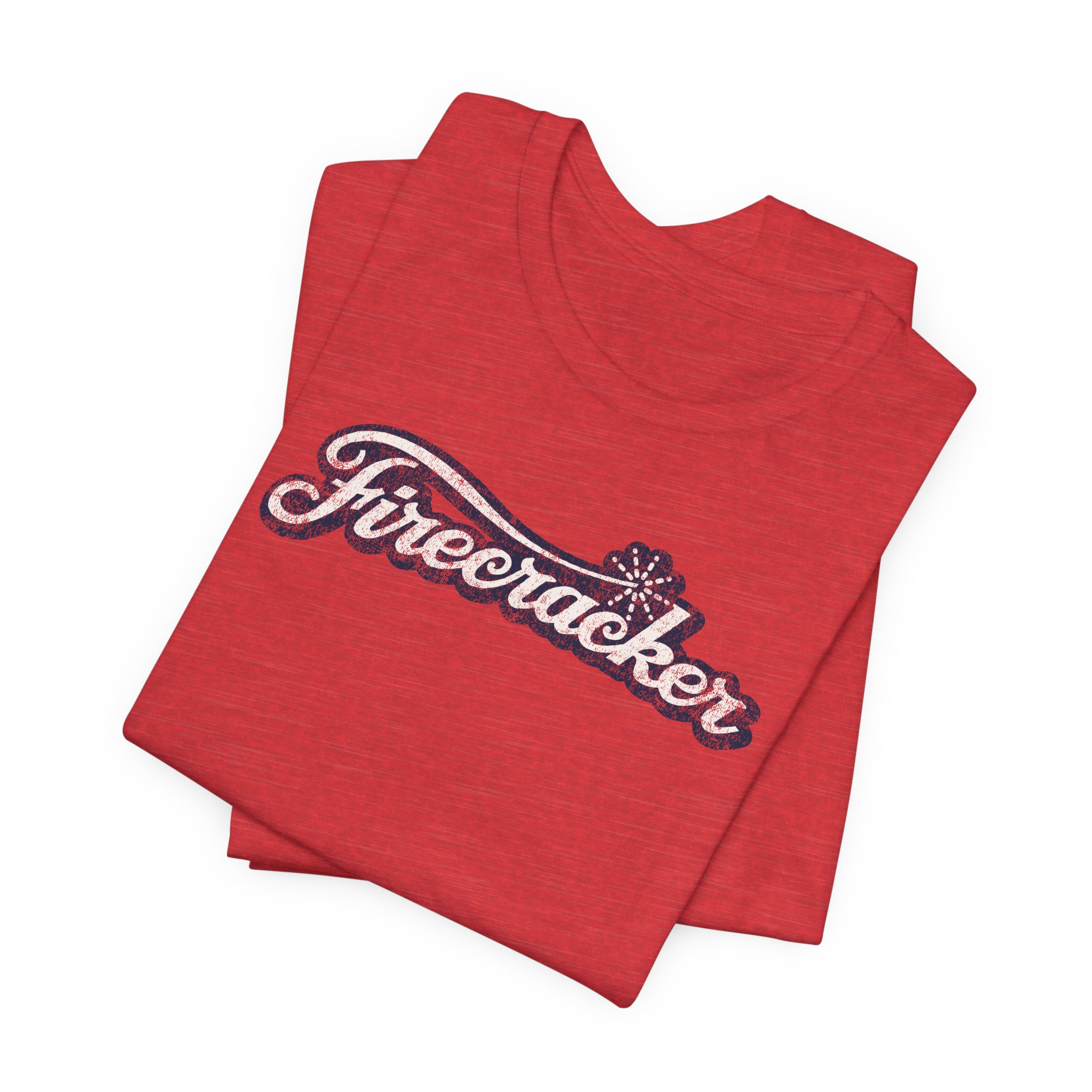 Firecracker Graphic Tee — Retro Script Patriotic T‑Shirt