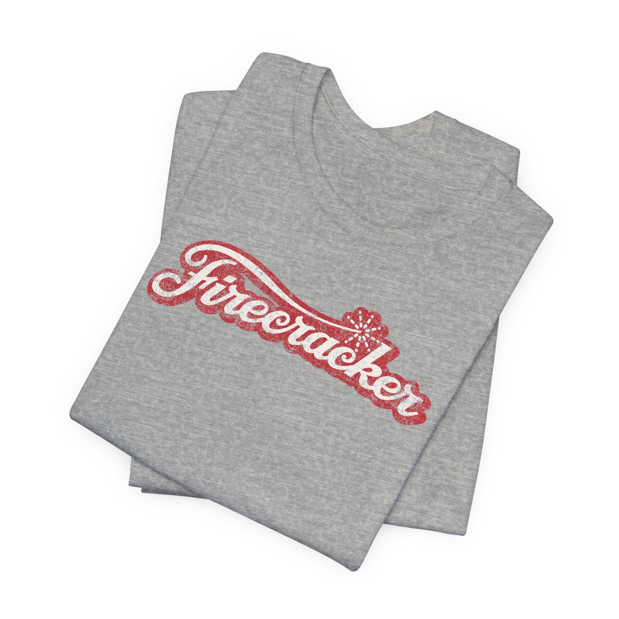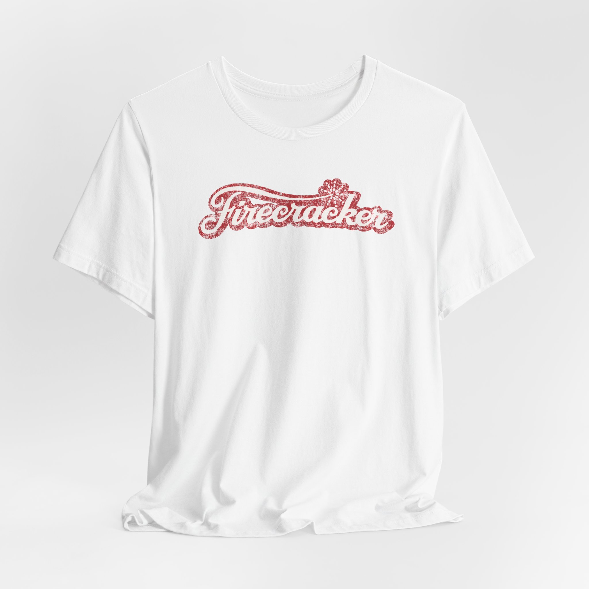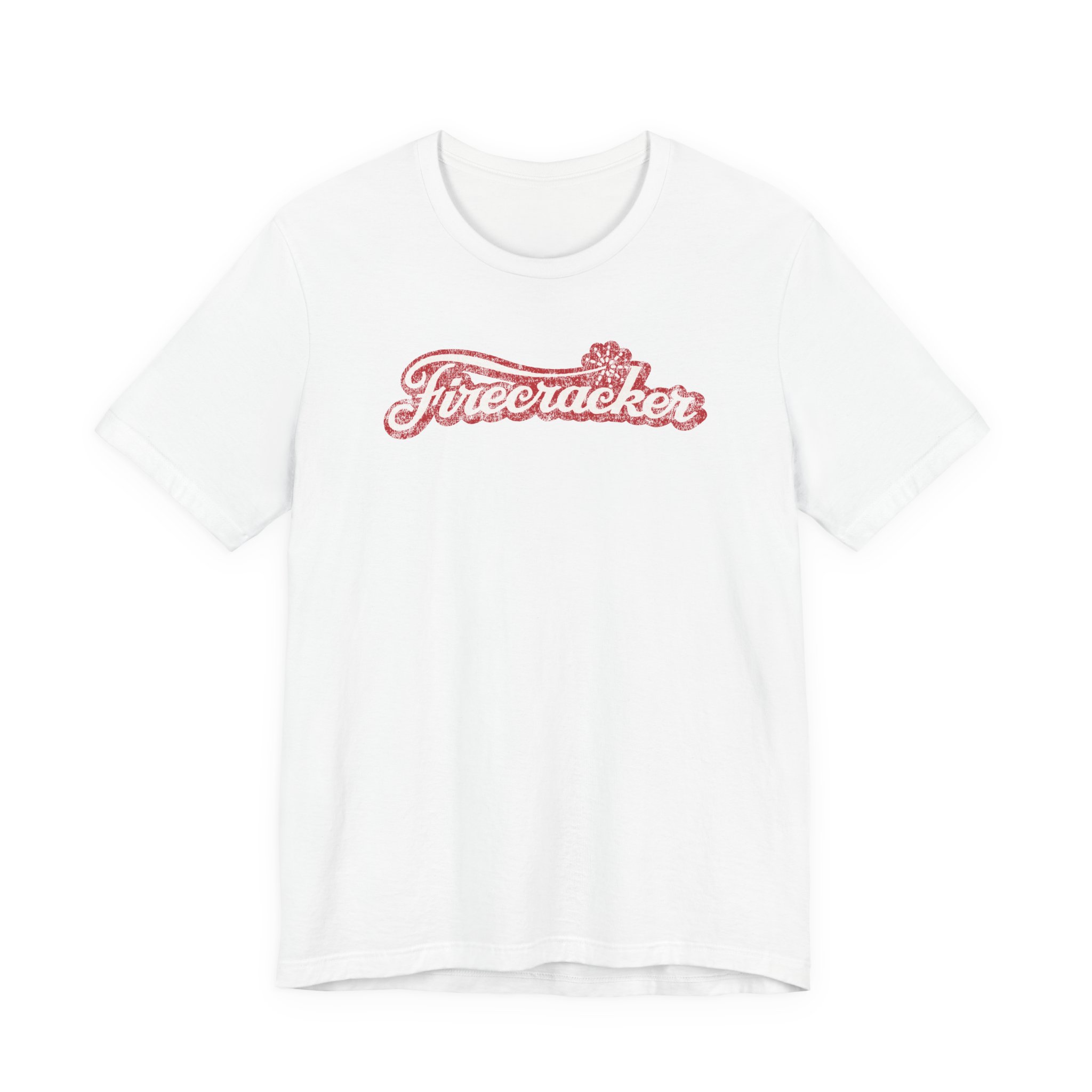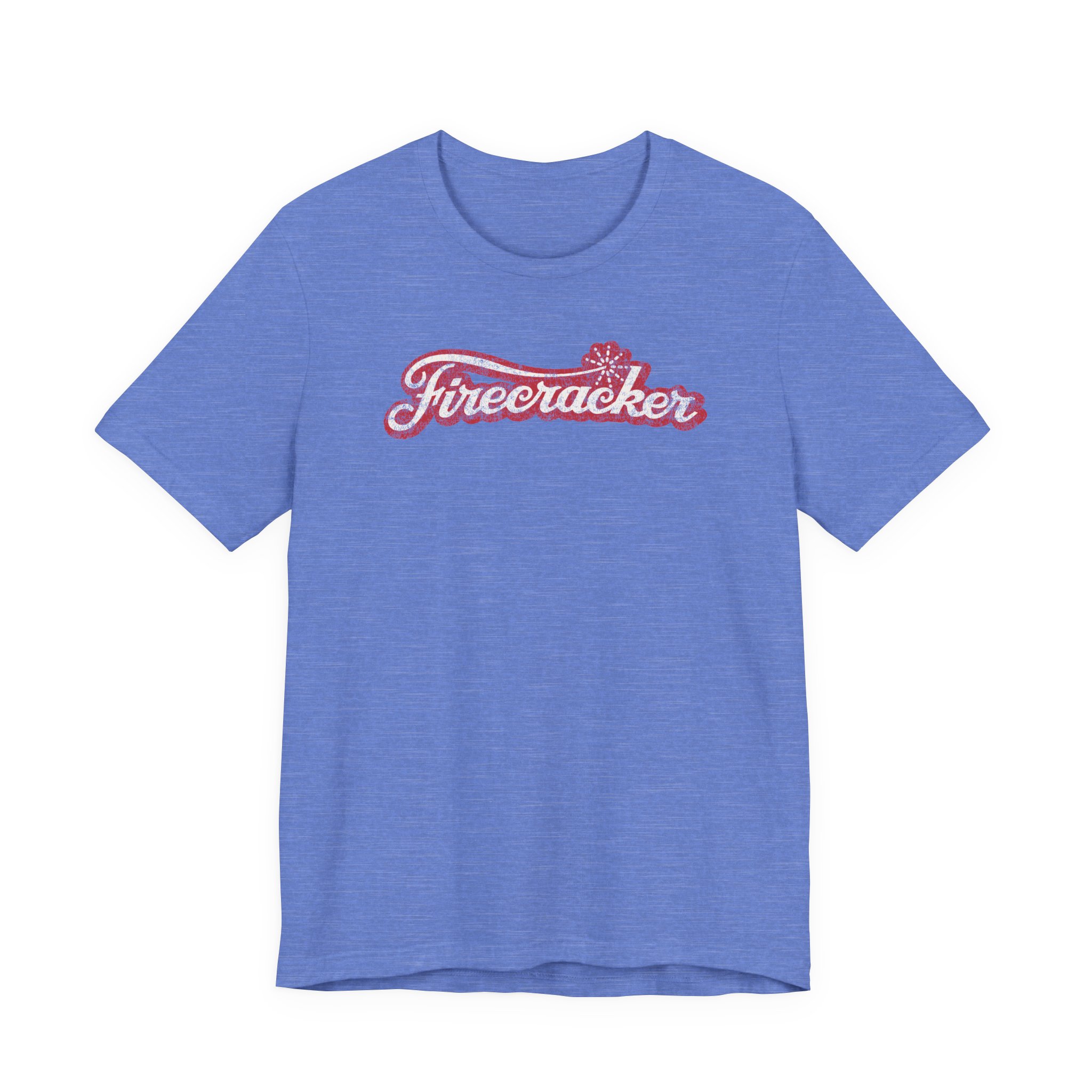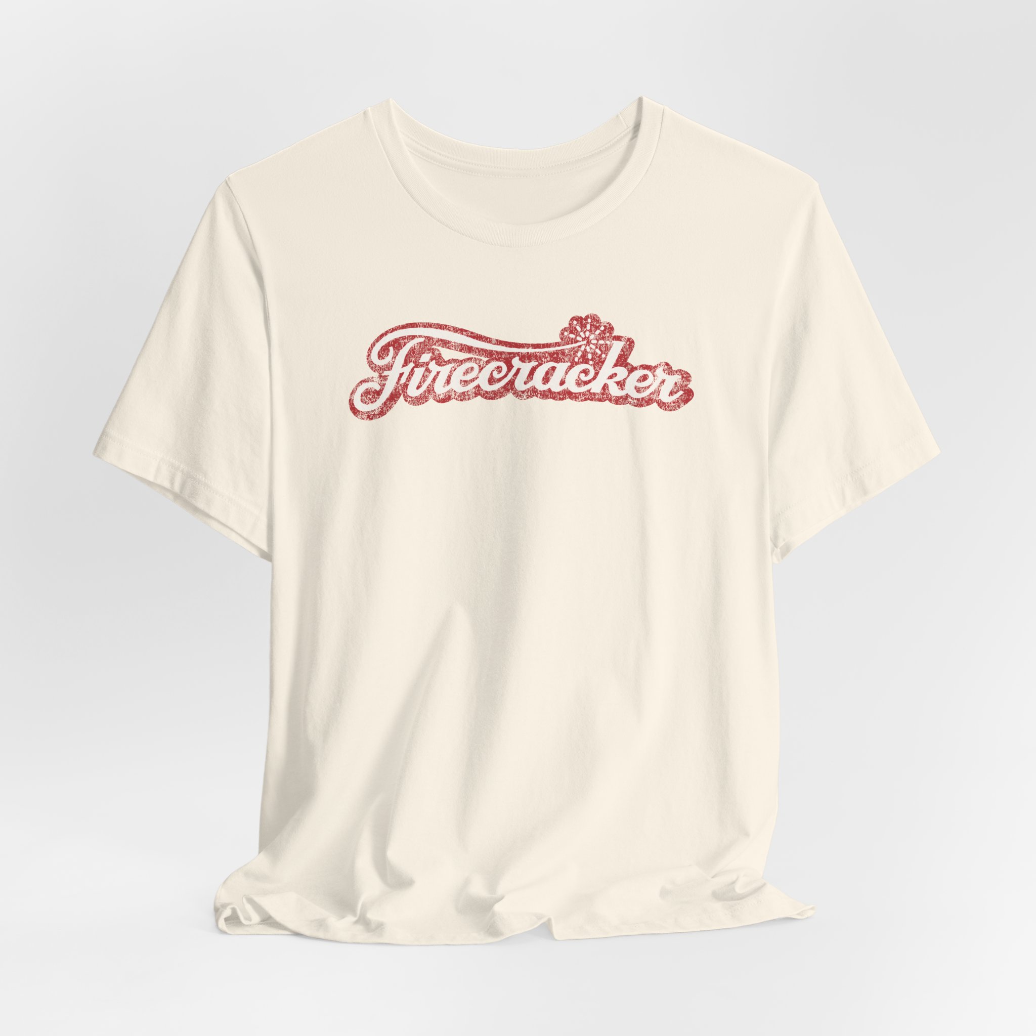Firecracker Graphic Tee — Retro Script Patriotic T‑Shirt