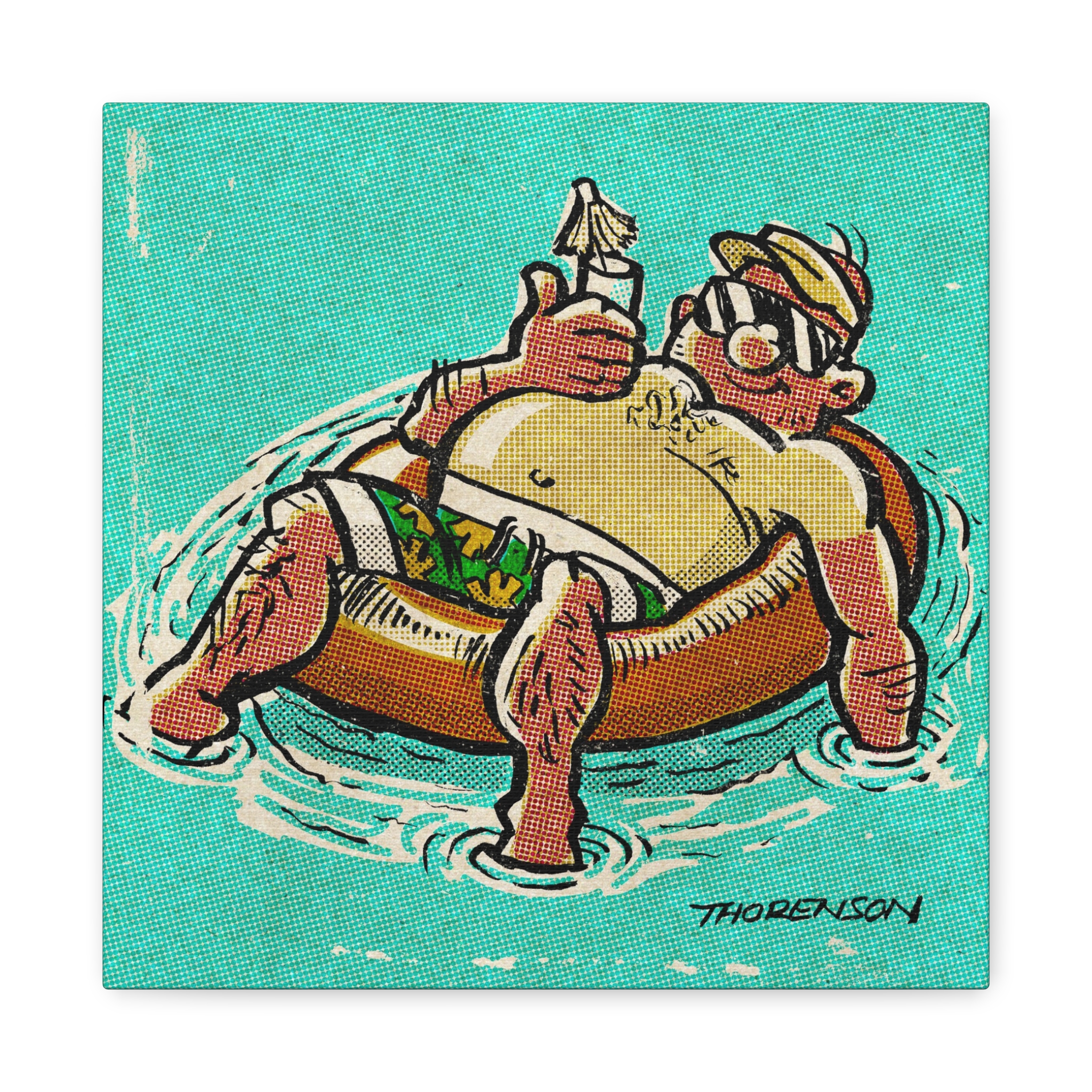 ‘Summer Tubing’ Canvas Print — Funny Man Floating on Inner Tube